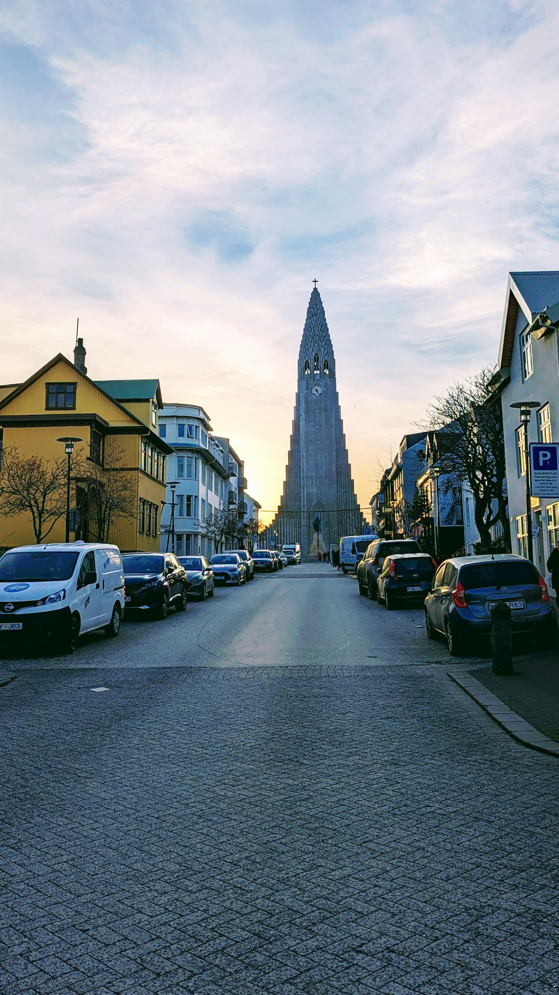 "Walking towards a Hallgrímskirkja dawn"