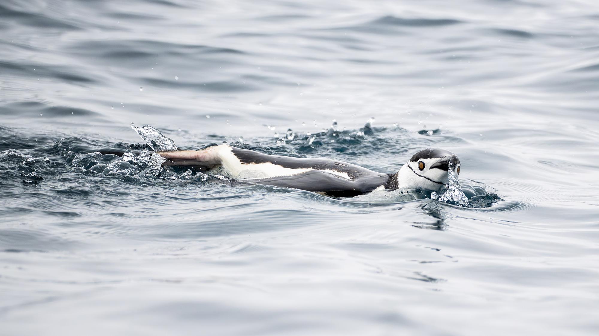 A Chinstrap penguin swimming. in the waters off Elephant Island, Antarctica.