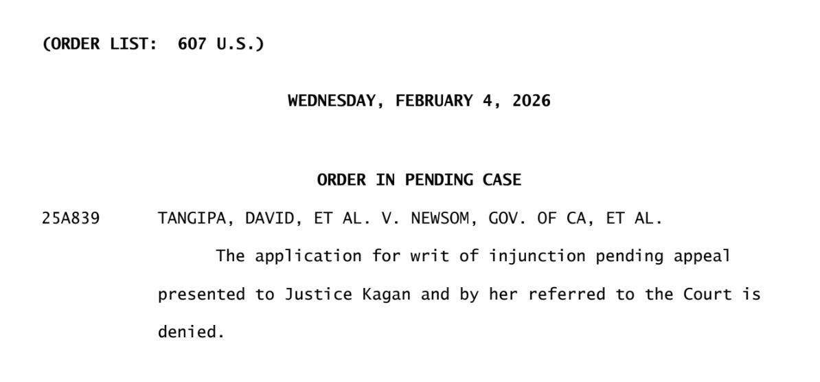 BREAKING: The U.S. Supreme Court will not stop the use of #California's new congressional maps in this year's midterm elections.