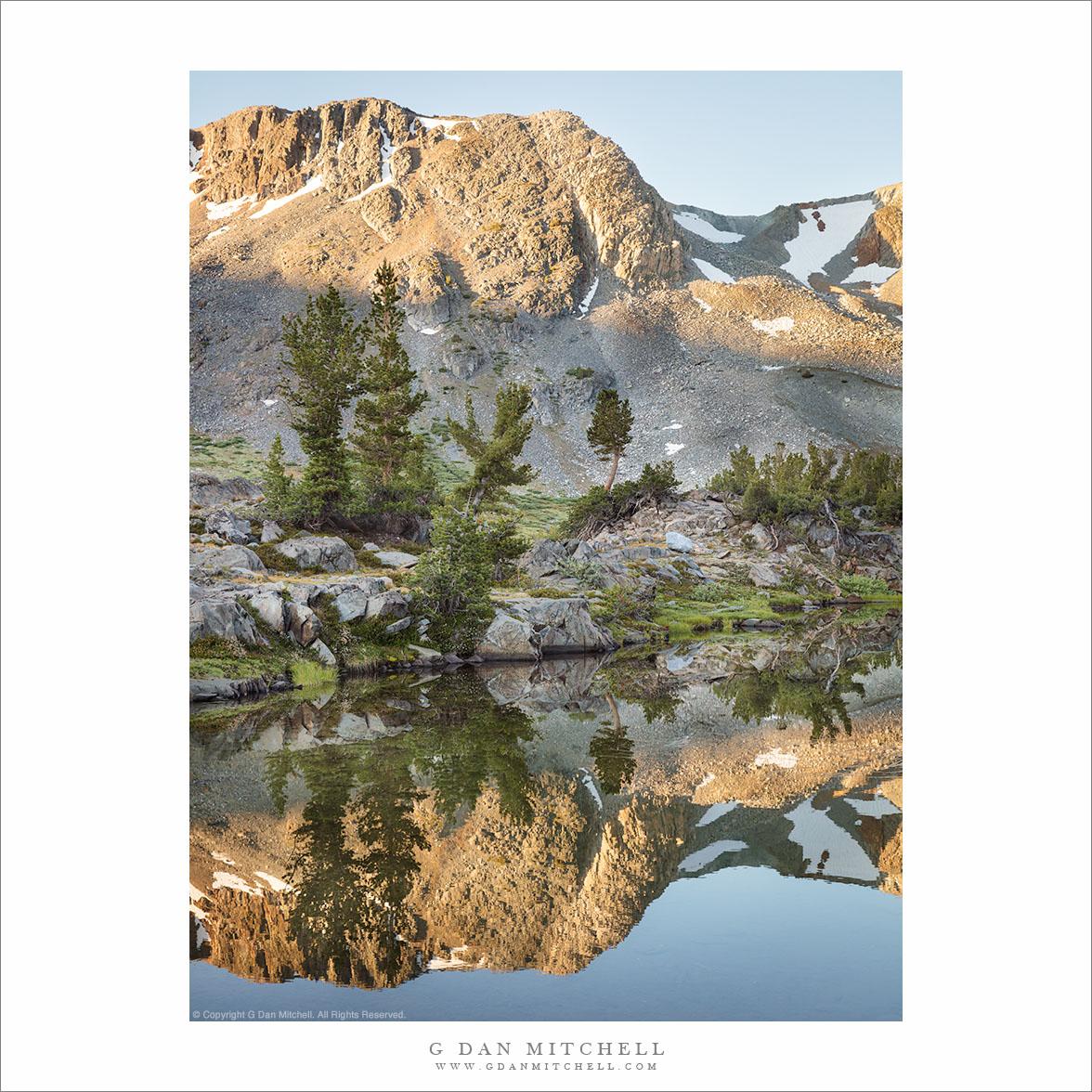 If you are a Sierra Nevada backcountry traveler, you recognize this a a classic Range of Light scene. It was early morning, and I had been photographing since before sunrise. I walked the shoreline of this subalpine lake, following terrain like that in this photograph. The sun’s light angled across the high peaks and talus slopes as it rose above ridges to the east…continues: https://gdanmitchell.com/2026/02/03/shoreline-and-reflected-ridge/