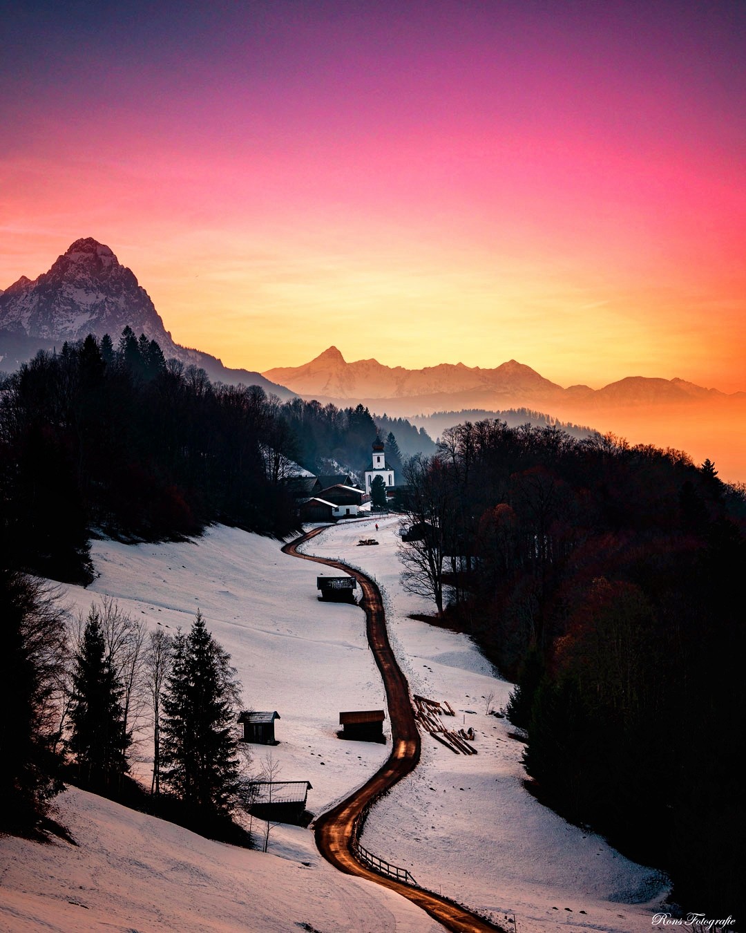 Winterzauber in den Alpen ❄️Sonnenuntergang über St. Anna in Wamberg.