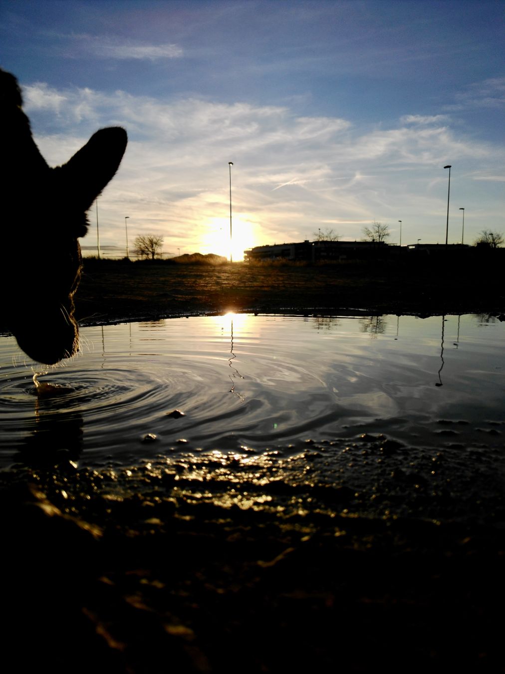 #photography #photo #fotografia #idar #pixelfed #sunset #reflections #urbanlandscape #water #silhouette #dog #YashicaFXD #YashicaS300 #24mm