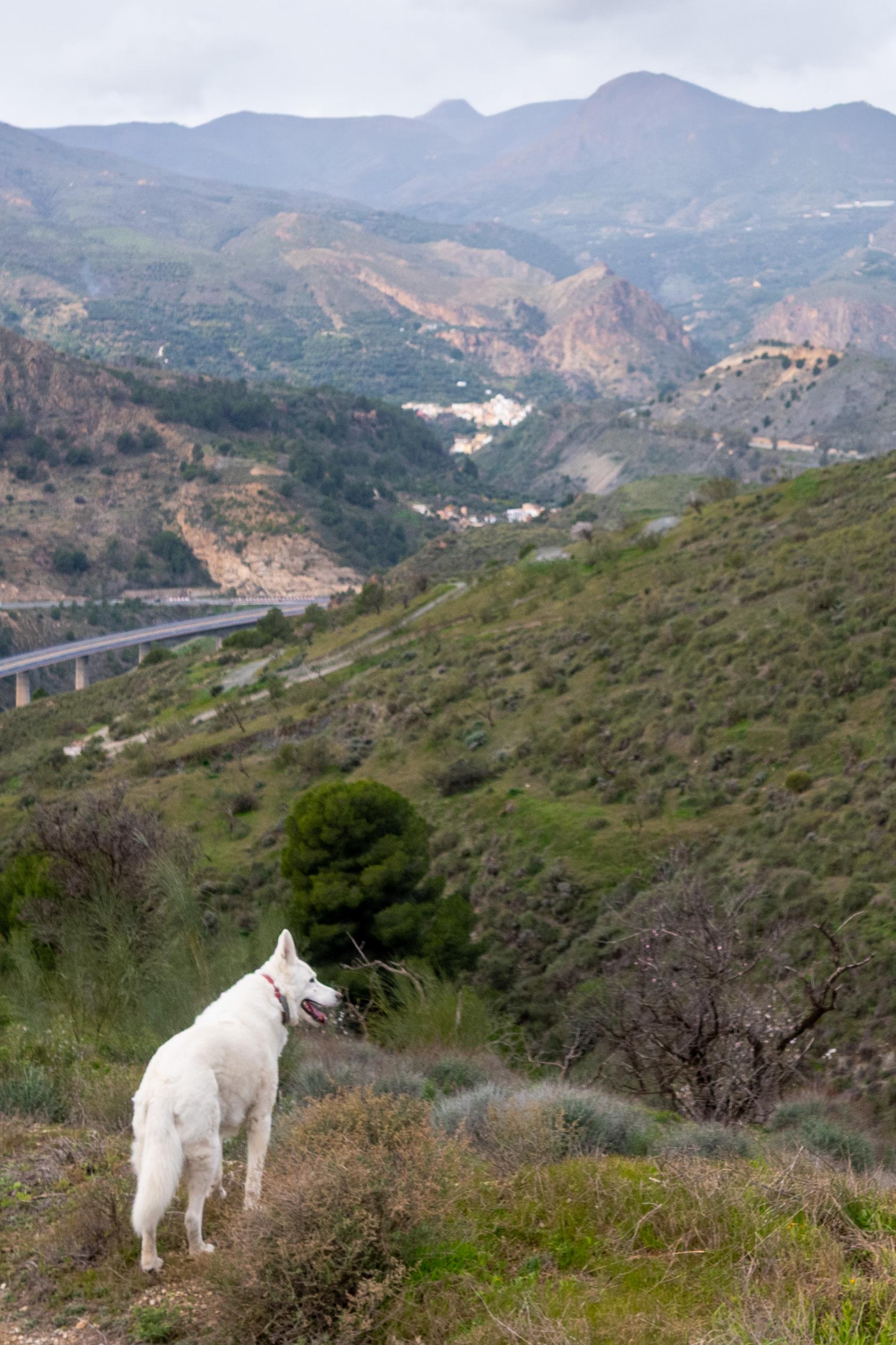 Today's dog walk in between winter storms reminded me that spring is indeed just around the corner. This particular walk is only 100m lower in altitude than my house but I was surprised to see the white and pink almond blossom out in full force. Lovely.
