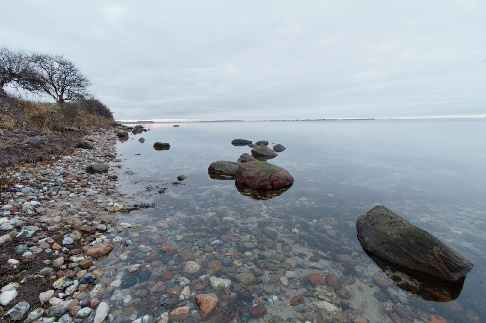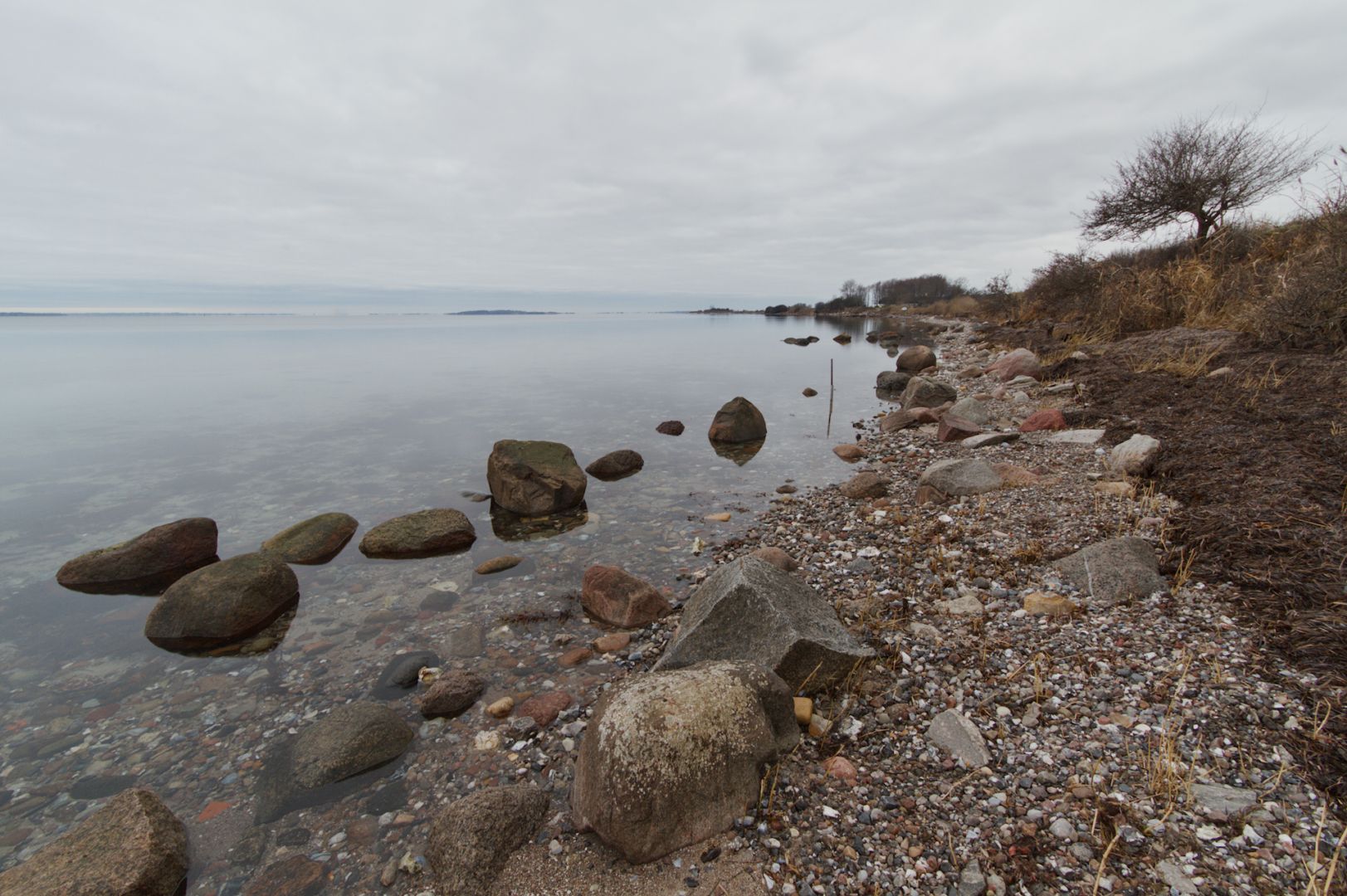 Dette er præcis samme motiv som mit forrige opslag - blot set fra den anden ende. Her ser vi mod nordøst, men træet, stenene er de samme. Landskabet i horisonten er Fyn og Skarø.