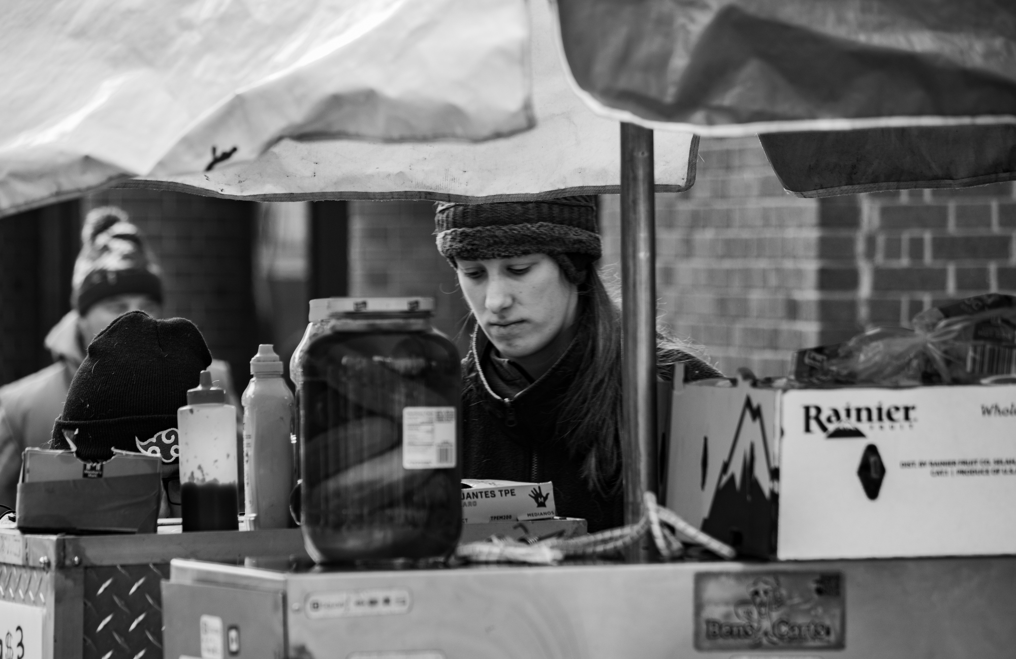 A hot dog stand in winter. Because hot dogs aren't sketchy enough without eating them from an outdoor cart. 馃摲 Pentax K-70 馃敇 Pentax 55-300mm APS-C #photography #streetphotography #art #monochrome #blackandwhite #B&W #BnW #EastCoastKin #hotdogstand #hotdog #vendor #humansofbluesky #Ricoh #P433