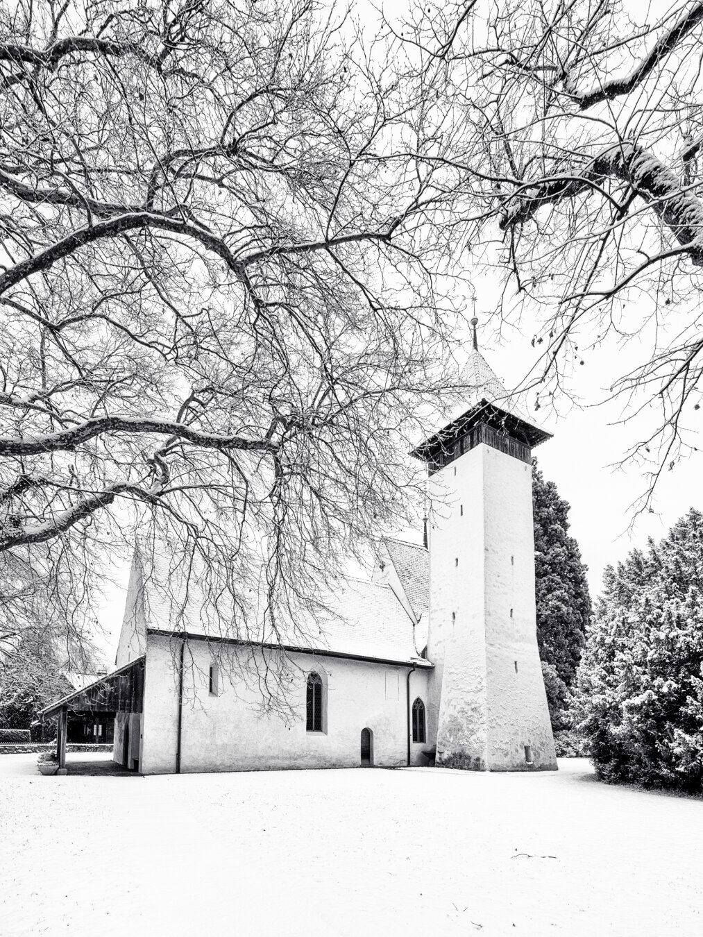 #hess_photography #Photography #Fotografie #Landscapephotography #Landschaftsfotografie #BlackandWhite #Winter #Church #Snow #Switzerland #Thun #Historic #Architecture #BareTrees #Serene