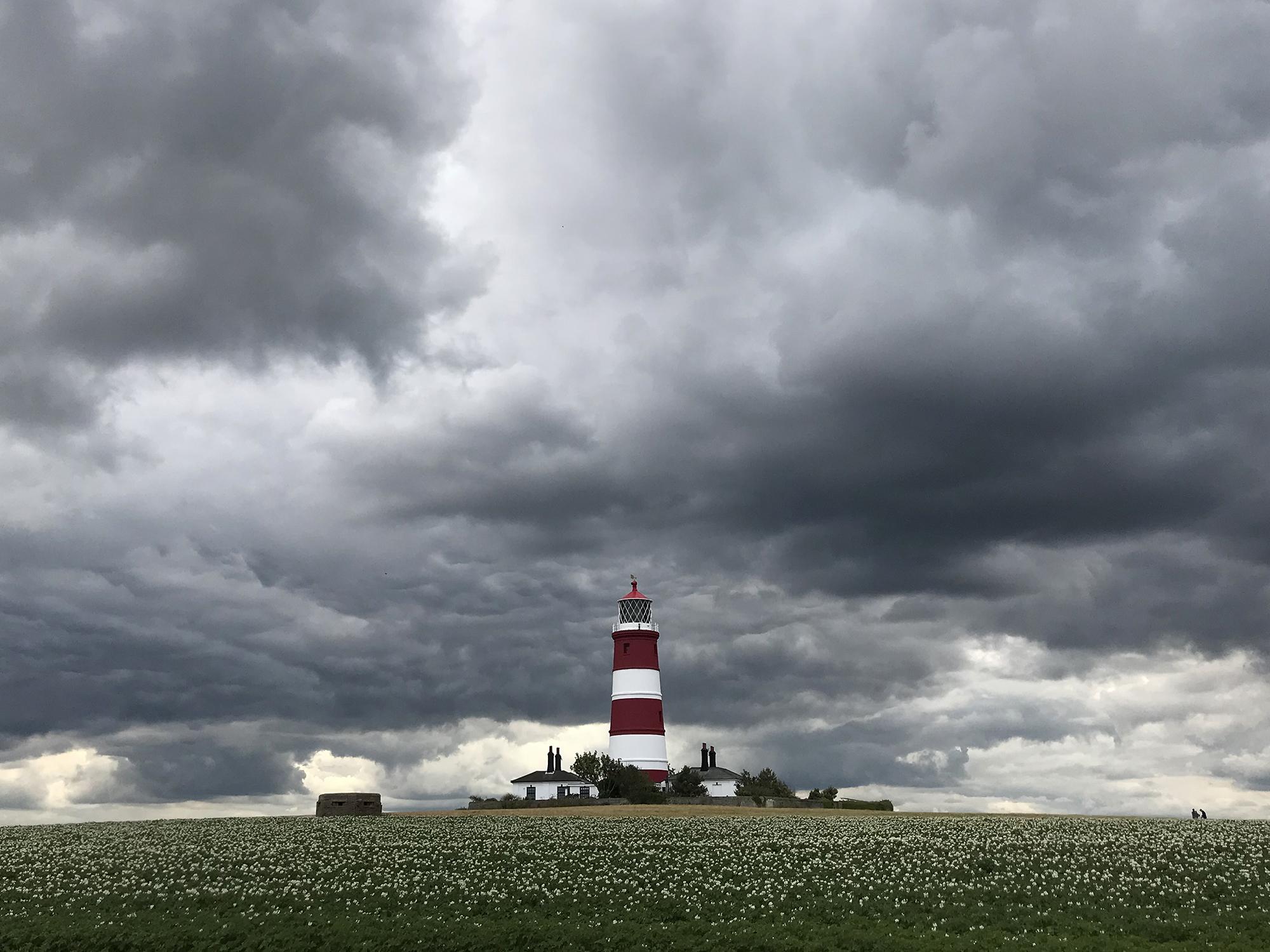Nimbostratus clouds over Happisburgh Lighthouse, Norwich, UK.