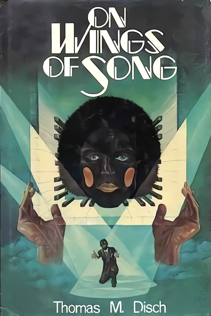 Behind Tom is the centerpiece of the cover—the Flying Lab, a futuristic aircraft with a sleek silver body and an aerodynamic design. The plane has a long, pointed nose, wide wings, and a curved, streamlined fuselage, giving it a distinctly advanced appearance. It also features rows of rivets and what appears to be an array of scientific instruments or mechanical features along its body. A set of rocket-like thrusters or engines emits a bright, fiery exhaust, suggesting high speed and cutting-edge propulsion technology. The background consists of a cosmic scene with deep blues and purples, depicting swirling clouds and a star-studded sky, reinforcing the book's theme of scientific exploration and technological progress.