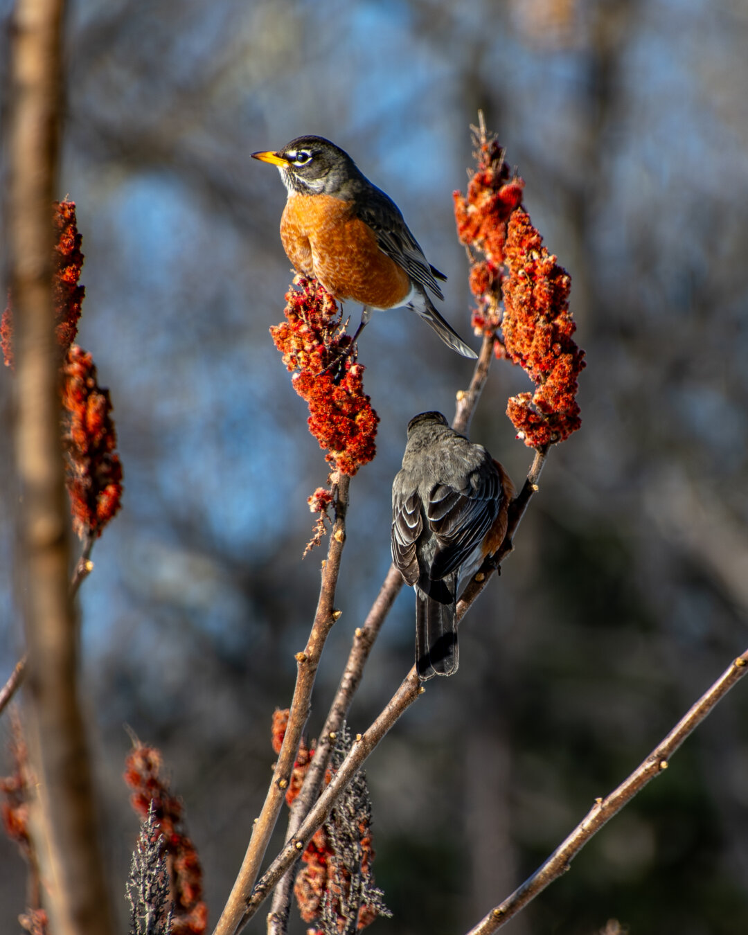 Robins snacking on sumac