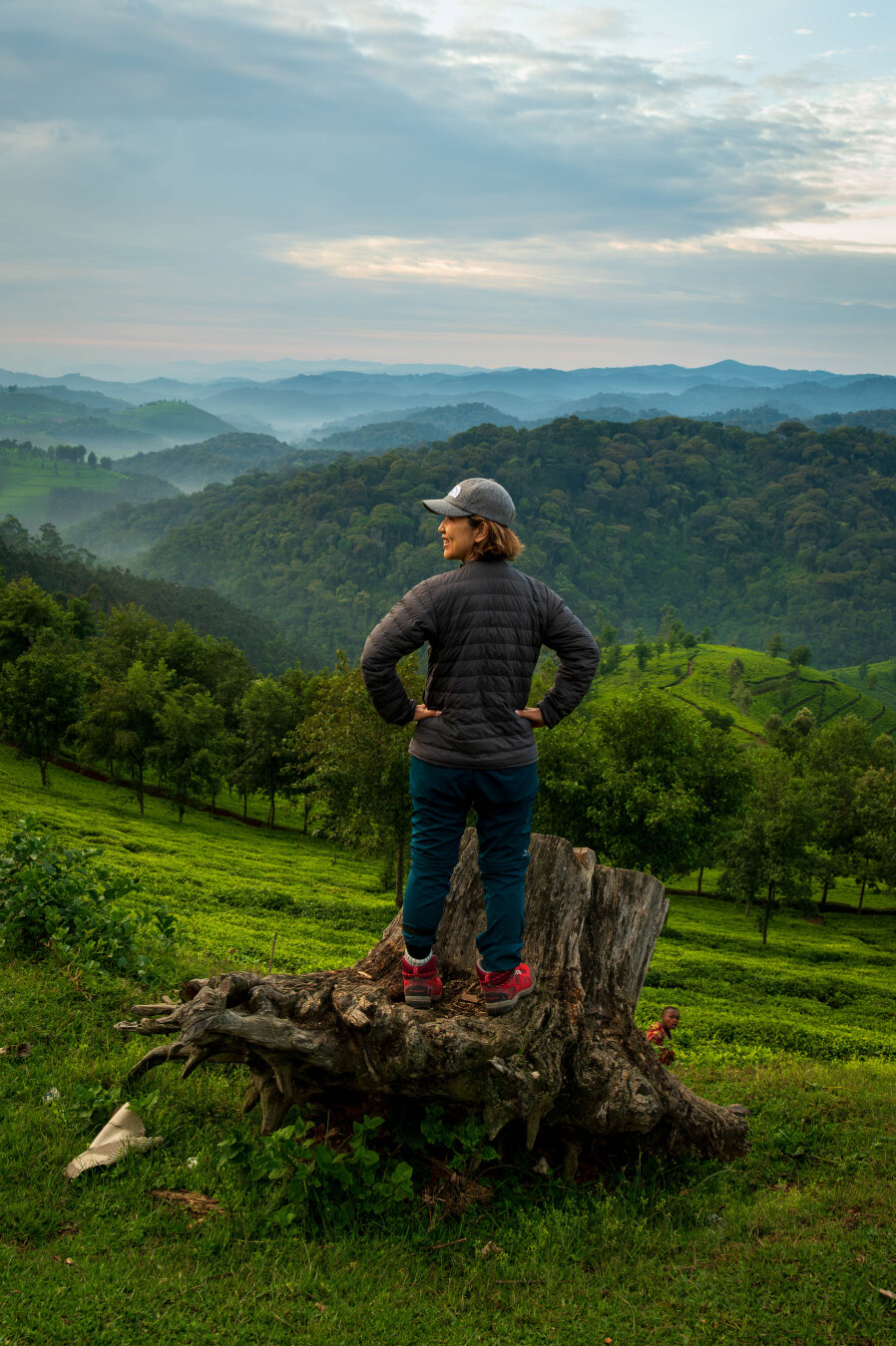 Standing above the tea fields as clouds roll through layered hills, quiet, vast, and grounding.