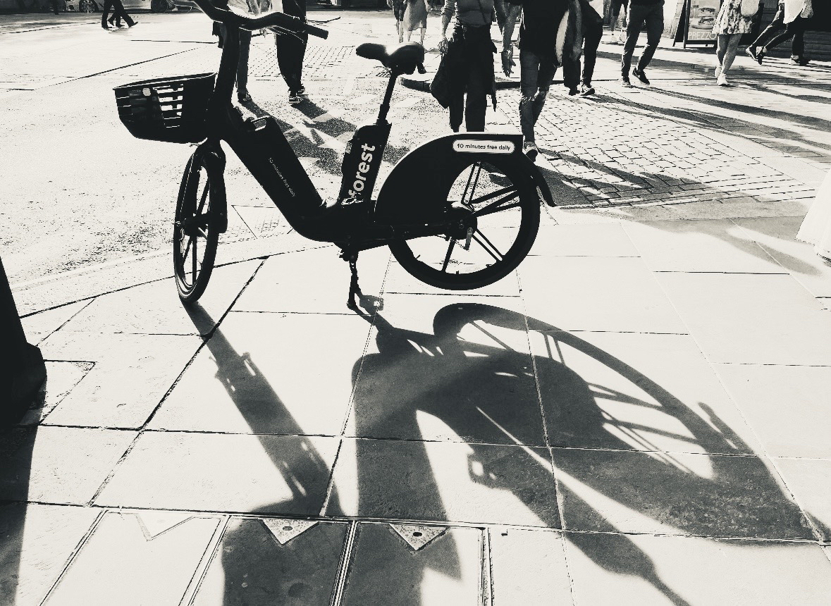Longer, warmer, shadowyer days are coming… 🖤 @forestbike.bsky.social@bsky.brid.gy #StreetPhotography #Monochrome #ActiveTravel #SharedMobility 🚲