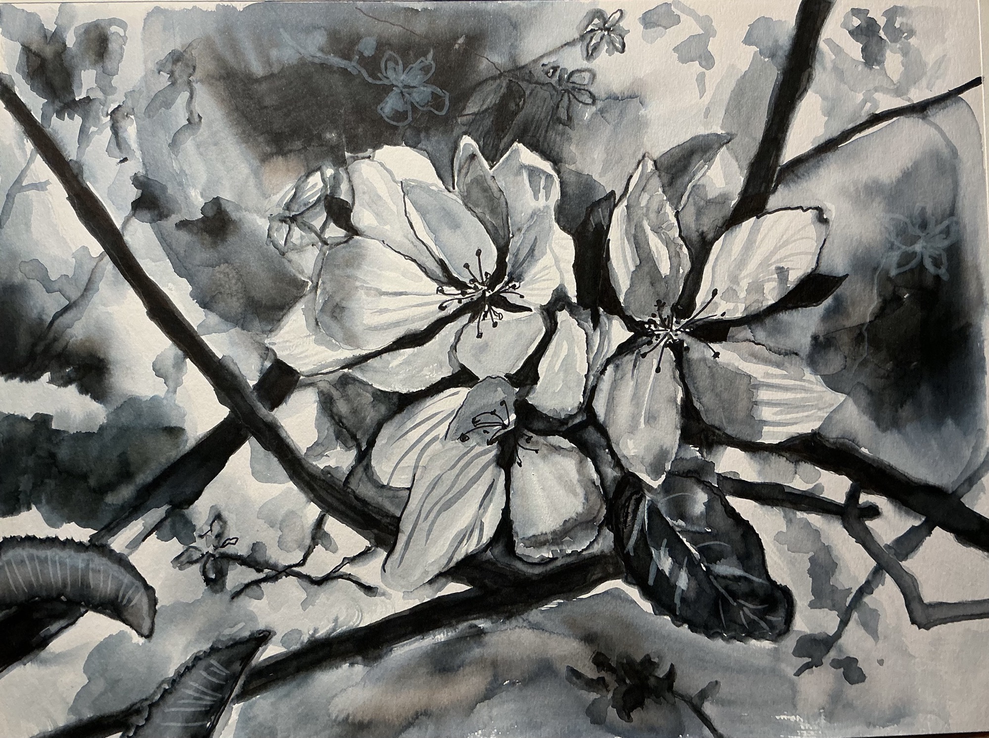 Ok I think it’s finished. Value study in black Tombow pen. Spring tree blossoms. #art #artist #watercolor #watercolour #sketch #tombow