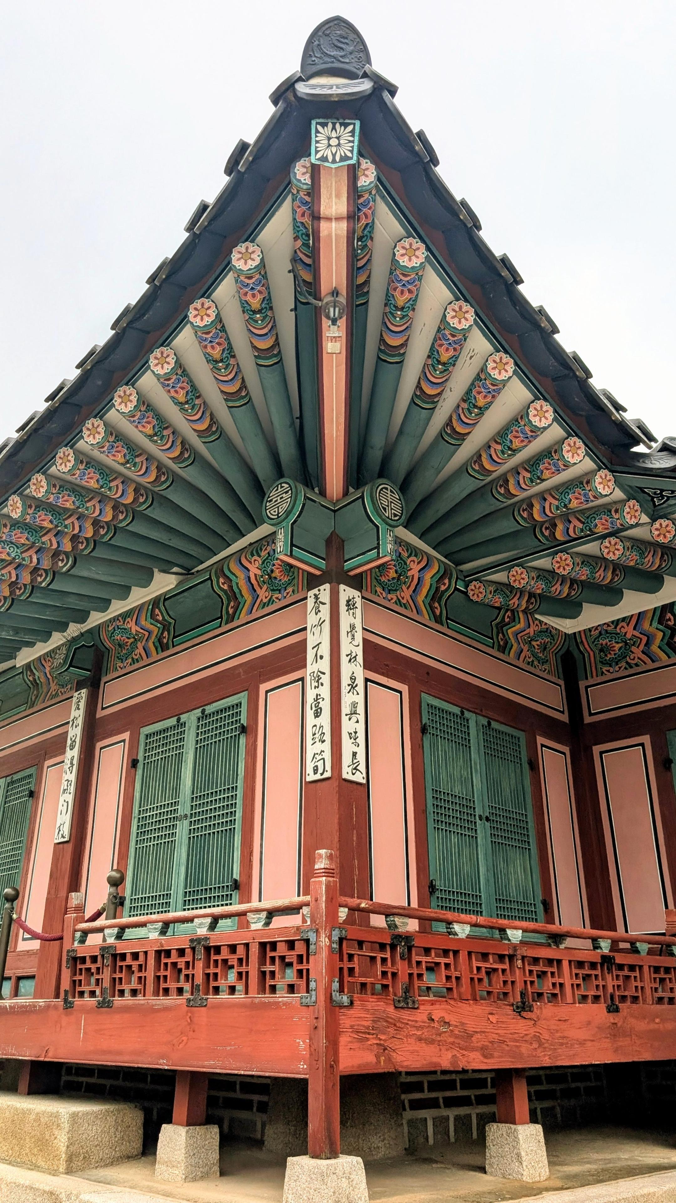 Built in the 14th century (was destroyed during a war in 16th century, rebuilt and restored since the 19th century) a corner of one many buildings in the grounds of the Gyeongbokgung Palace, Seoul, South Korea.