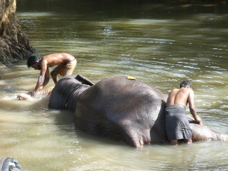 mahout lavano un elefante