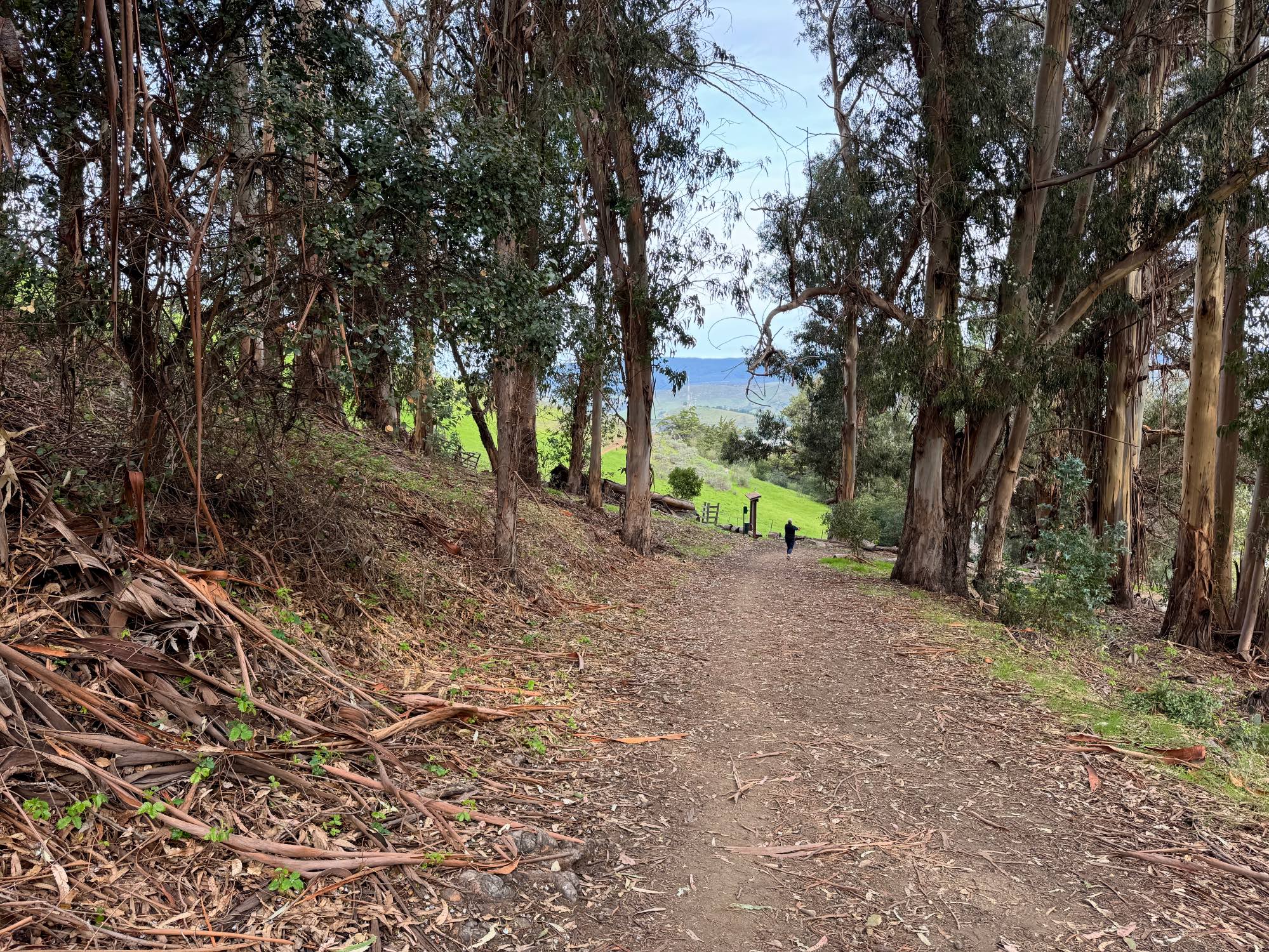 #ForestFriday #Scape Hiking through the eucalyptus forest to the green hills beyond. #EastCoastKin #Hiking #Eucalyptus #WestCoastKin #Trees
