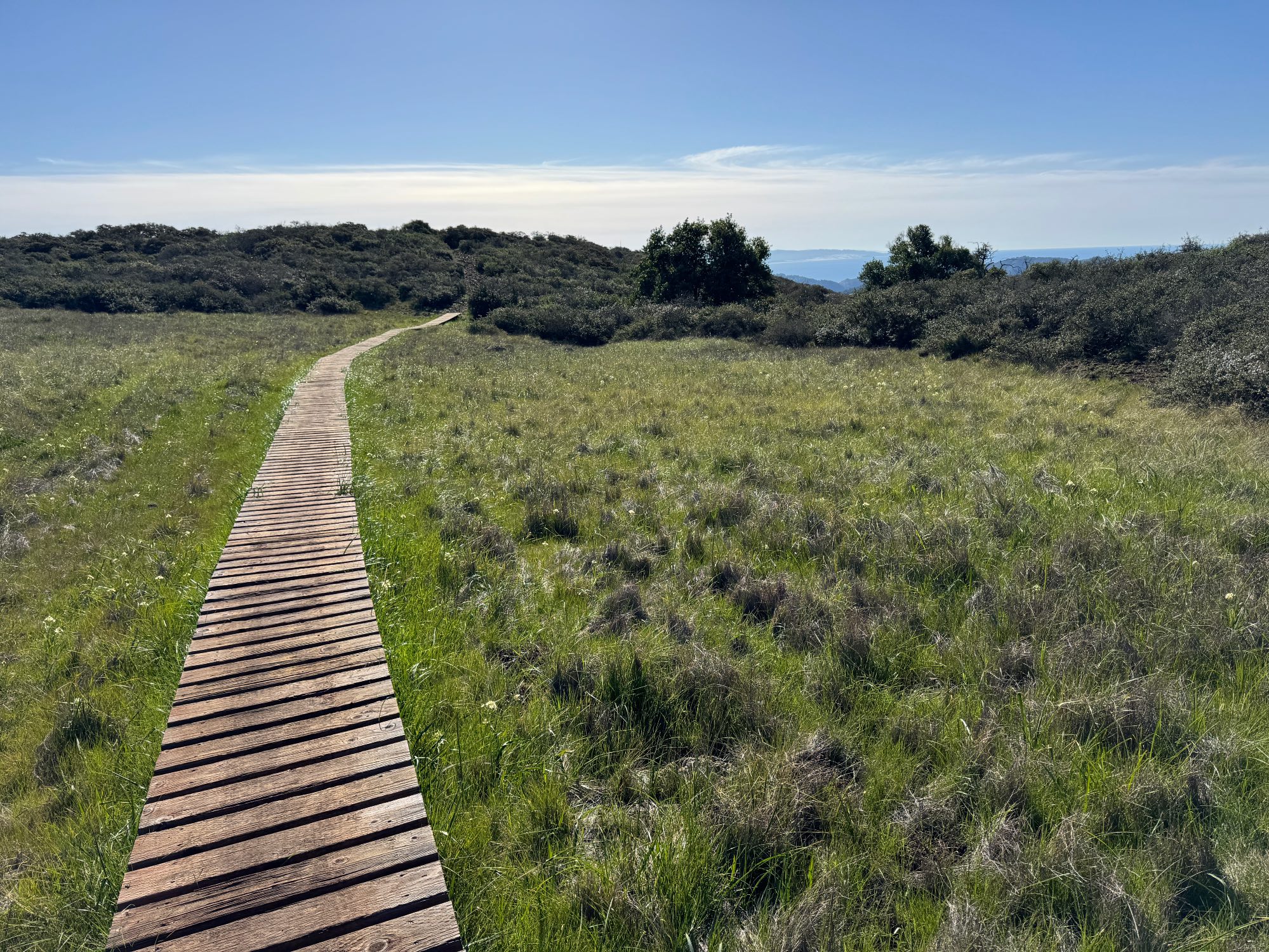 #Scape #JanuArty2026 #Connection Boardwalk connects a trail over a bog. The distant blue under the clouds is the ocean (roughly Oceano). #EastCoastKin #Hiking #WestCoastKin #ColorADay #GreenSat