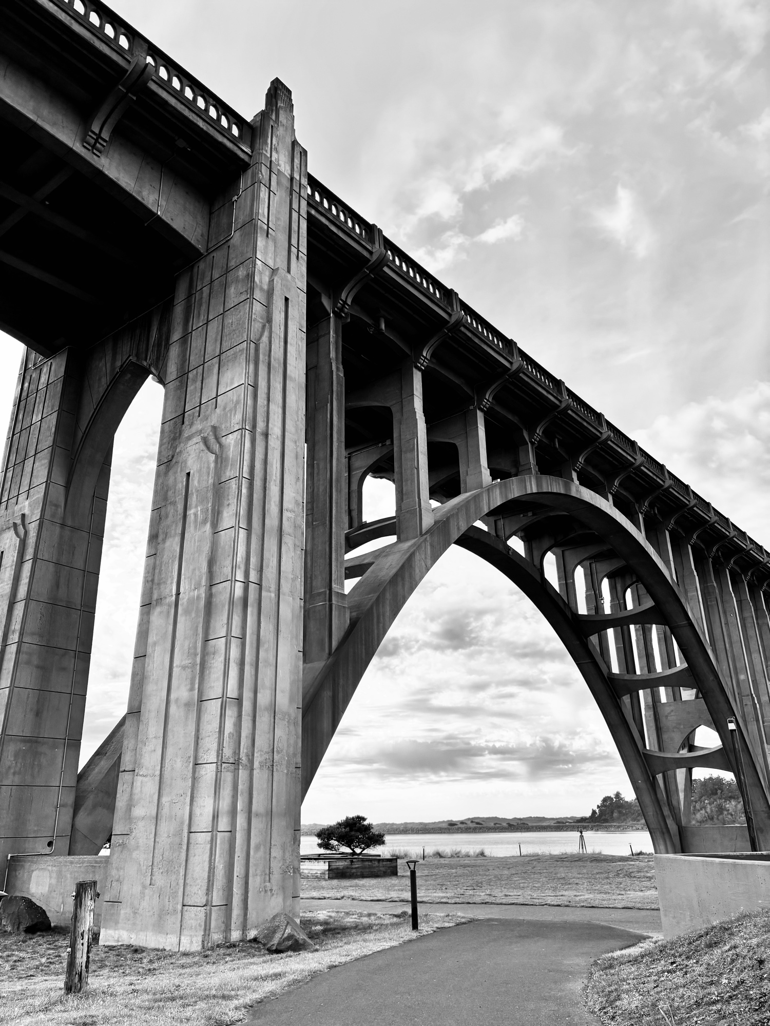 #ColorADay | #BWFri Everything was black & white in 1934 when they started building the Yaquina Bay bridge 馃お馃榾. (Photo converted to #B&W in post) #Scape #Photography #WestCoastKin #EastcoastKin #BlueskyPhotography #PhotographersUnited #PNW #Oregon #Newport #ArchitecturalPhotography #Architecture