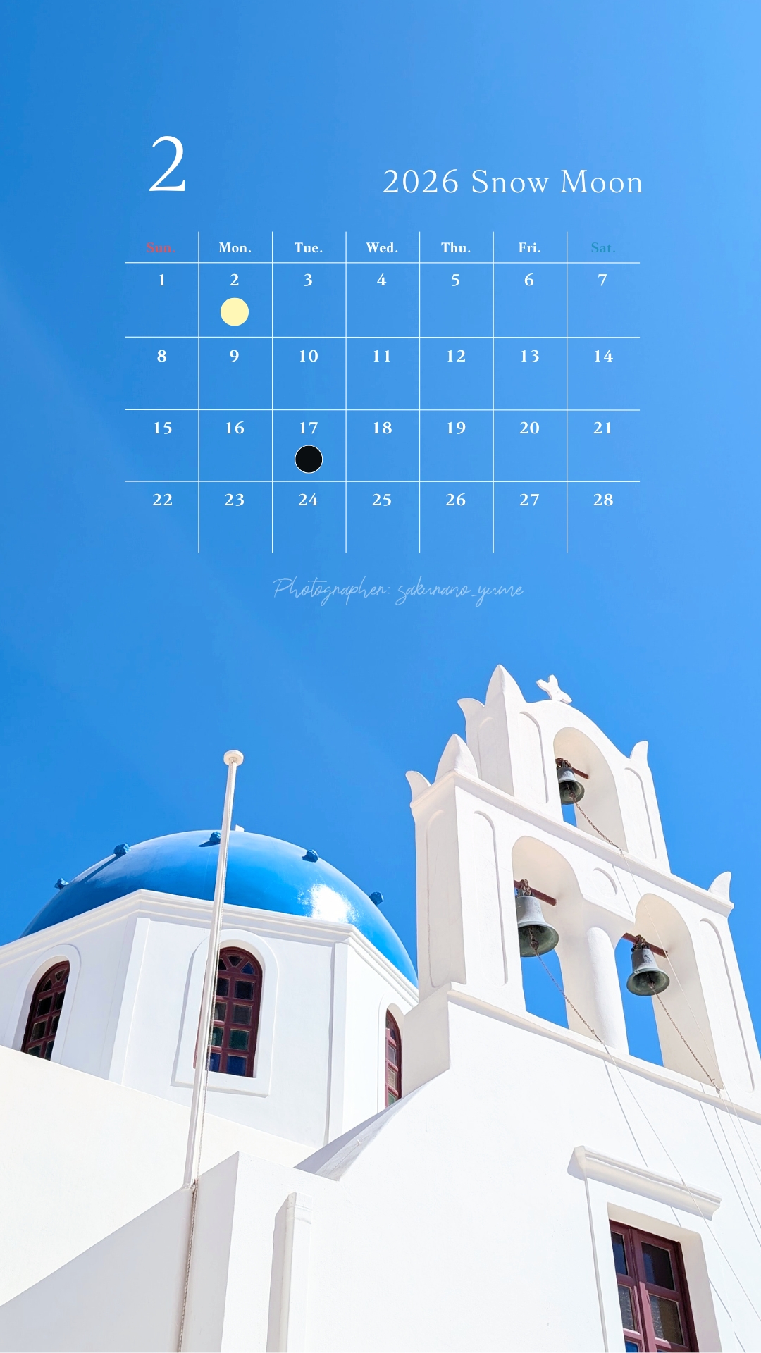 February Wallpaper Calendar] Tomorrow marks February. This is an original wallpaper calendar for smartphones📱 showing full and new moon dates. May good fortune be yours in February. #美しい風景 #ブルスコ写真部 #Bluesky #Photography #Photo #photographic #landscape #landscapephotography @bskyphotos.bsky.social@bsky.brid.gy