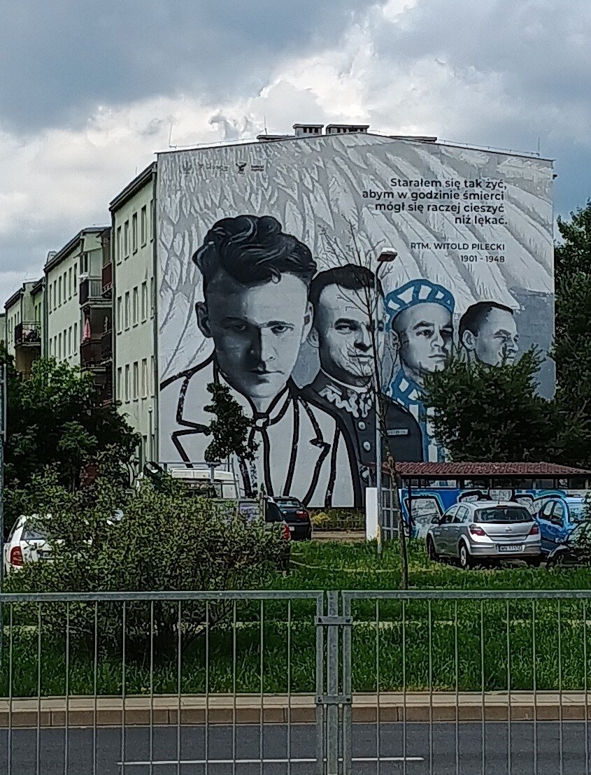 Mural by Bakcyl Studio in Warsaw (Poland) dedicated to Witold Pilecki, a Polish World War II cavalry officer. In 1940, Pilecki volunteered to allow himself to be captured by the occupying Germans in order to infiltrate the Auschwitz concentration camp.