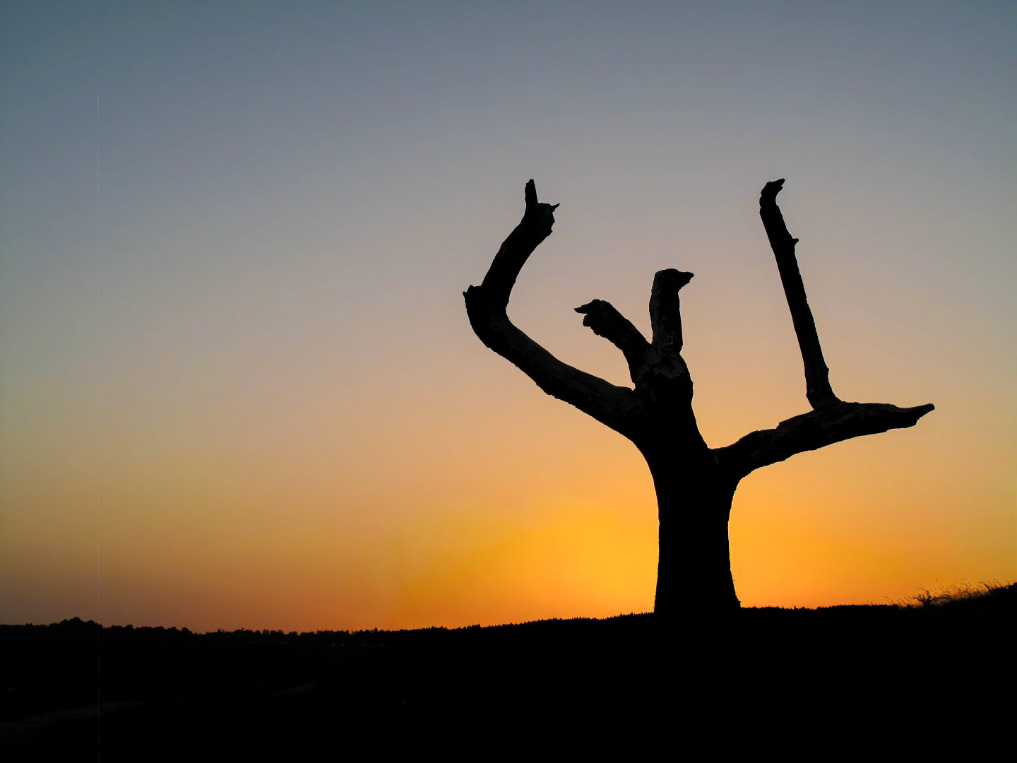 Day 34 - sun setting behind dead treee trunk, St Catherines Hill, Winchester, England 2019