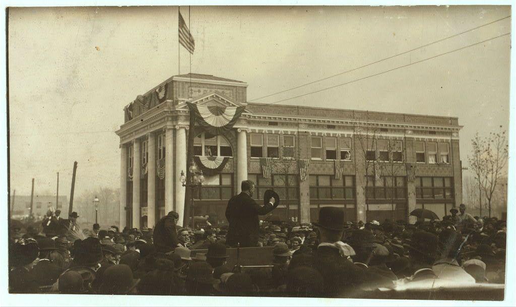 Col. Roosevelt addressing crowd at Ensley, Ala., on the occasion of N.C.L.C. Conference at Birmingham. Location: Birmingham, Alabama.