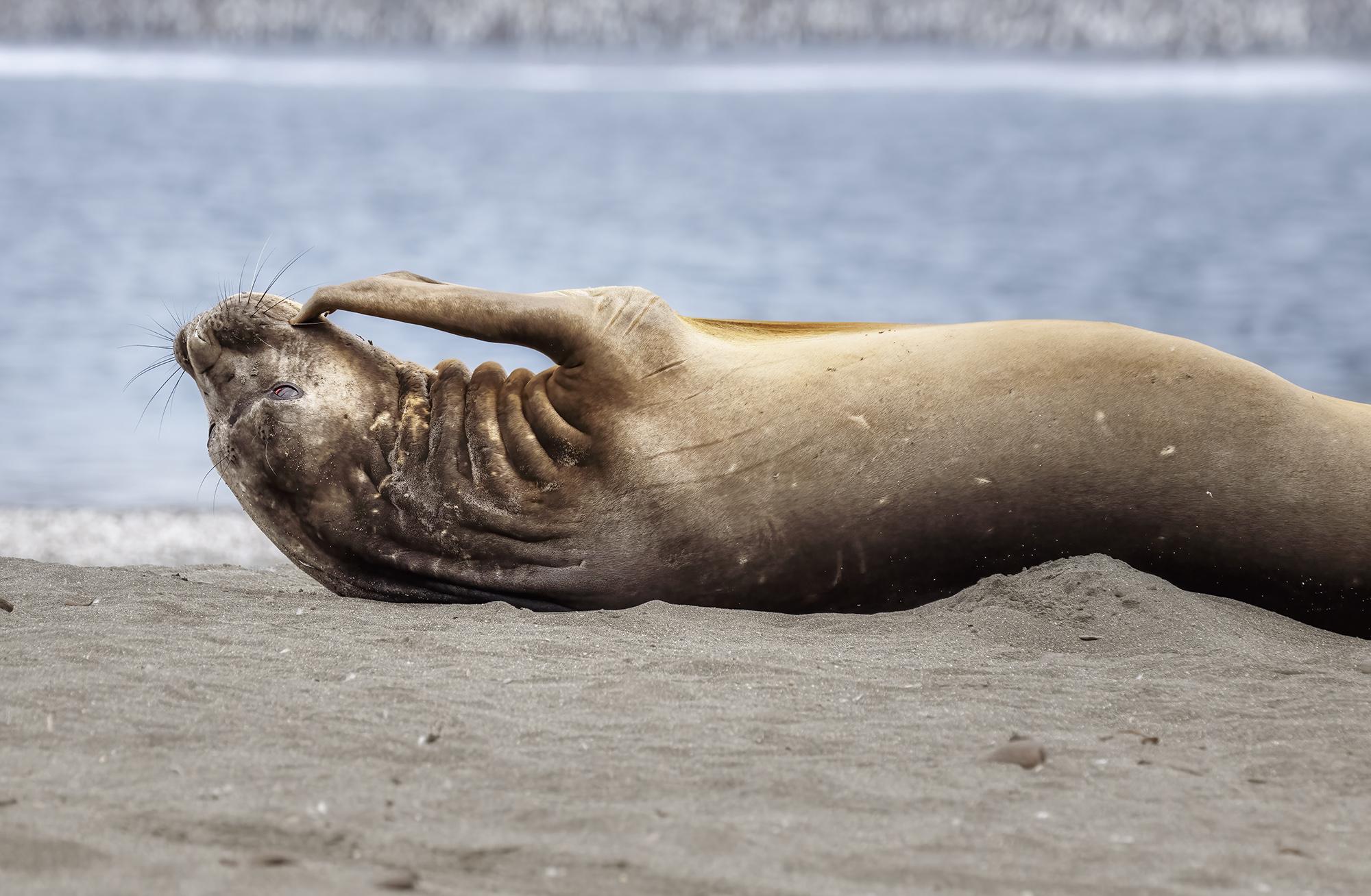 Relaxed Elephant Seal on South Georgia Island by Joan Carroll