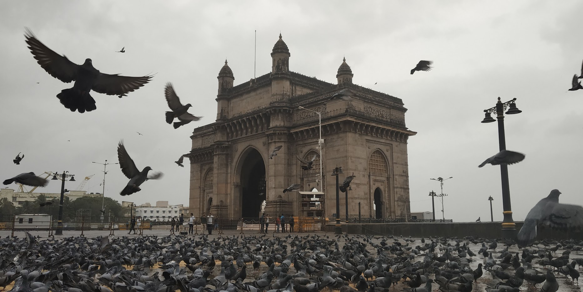 Today's #BirdOfTheDay theme (alt) is Pigeons, so here's a whole lot of pigeons, with the Gateway in the background.