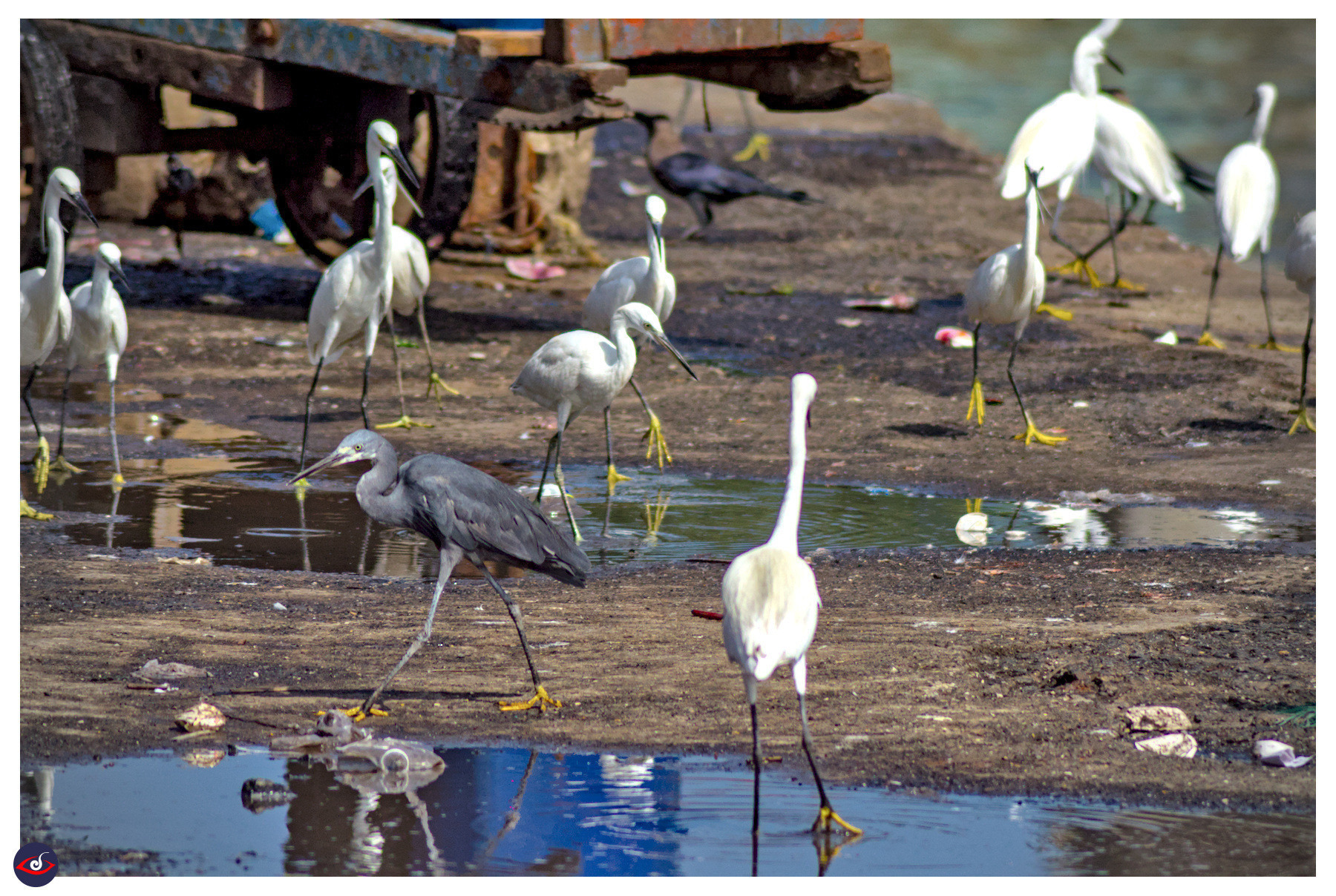 Siege of Egrets and a Lone Grey (Reef Heron)